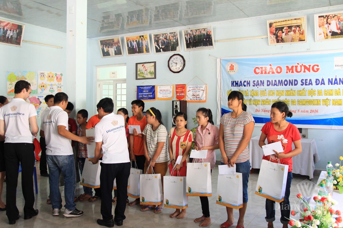 Today, the 55th anniversary of Vietnam Association of Victims of Agent Orange/Dioxin (10/08/1961 – 10/08/2016), Diamond Sea Hotel’s management board visited and gave gift for Victims of Agent Orange, center 3, Hoa Nhon commune, Hoa Vang district.