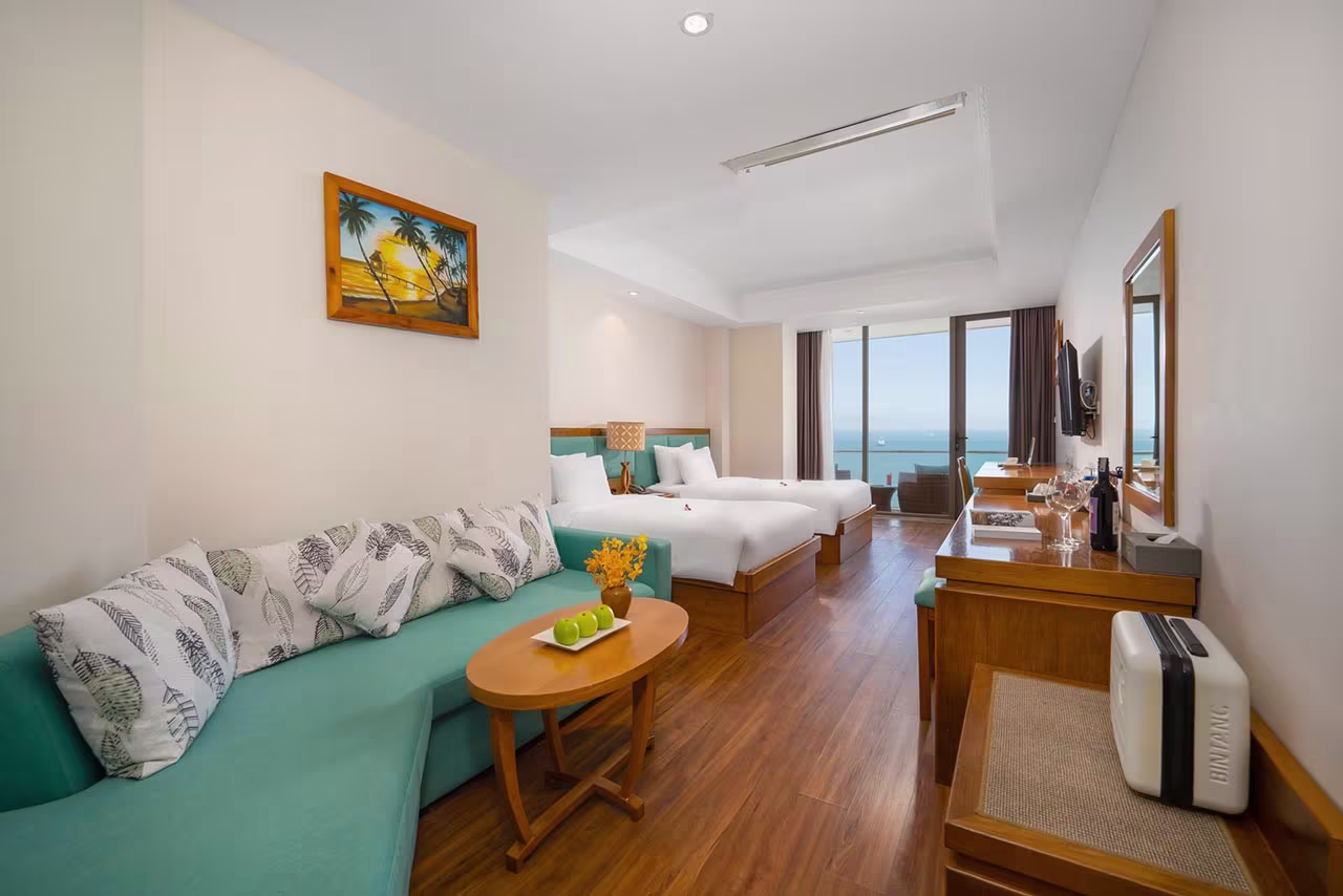 The Ocean Premier Room is a luxurious retreat, offering breathtaking panoramic views of the iconic My Khe Beach. With its spacious design and premium amenities, this room is perfect for travelers seeking a blend of comfort and elegance. Floor-to-ceiling windows and a private balcony provide uninterrupted views of the turquoise waters and golden sands. Spacious and Elegant: With a size of approximately 36m², the room features a king-sized bed, a stylish seating area, and a dedicated workspace.