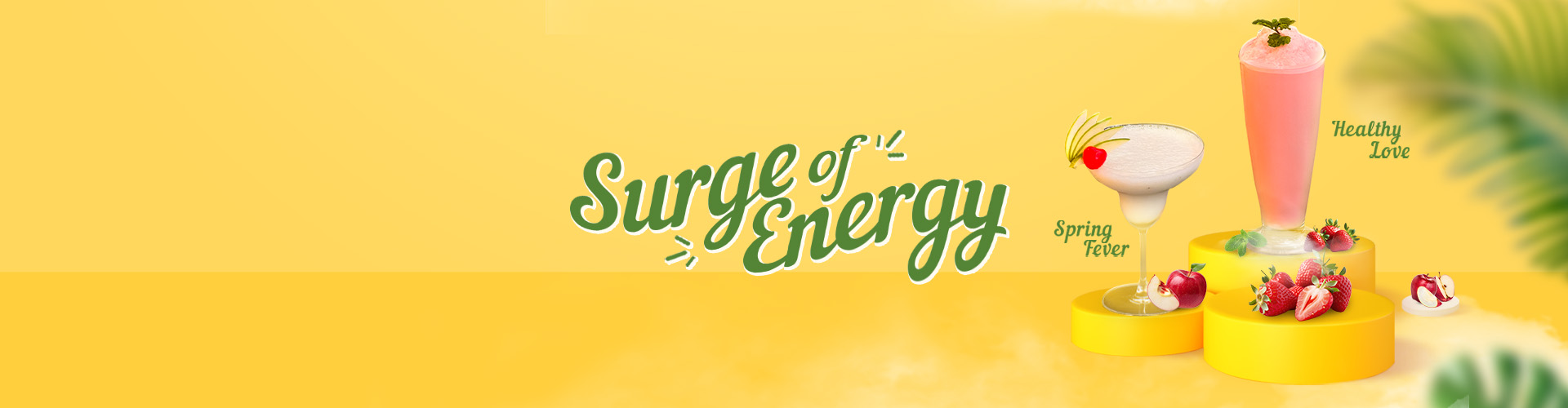 Sẵn sàng để đánh thức sự hứng khởi và nạp nguồn năng lượng mới ngay trong kì nghỉ của  bạn với sinh tố dinh dưỡng đặc biệt "𝐒𝐮𝐫𝐠𝐞 𝐨𝐟 𝐄𝐧𝐞𝐫𝐠𝐲"! Khám phá Healthy Love với hương thơm ngọt ngào của dâu tươi kết hợp vị ngọt tự nhiên của chuối, tạo nên một trải nghiệm tuyệt vời đầy mê hoặc. Thưởng thức vị thanh mát của táo đánh thức tinh thần và khơi dậy niềm say mê khi nhấp môi  Spring Fever.