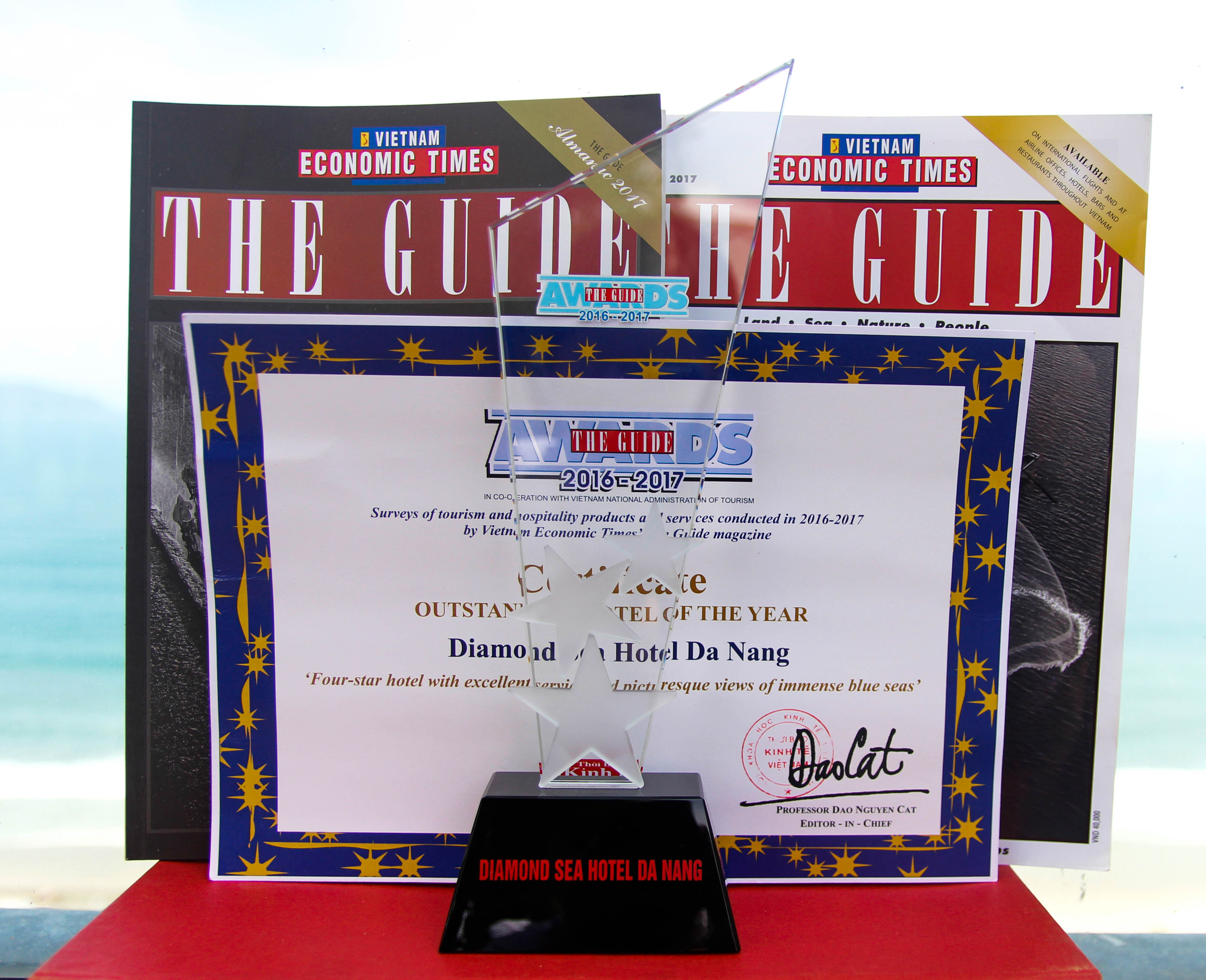 “THE GUIDE AWARD 2016 – 2017” for OUTSTANDING HOTEL OF THE YEAR. This prestigious award is presented in recognition of excellent customer satisfaction and it’s also a milestone for over 2 years development of Diamond Sea Hotel Da Nang.