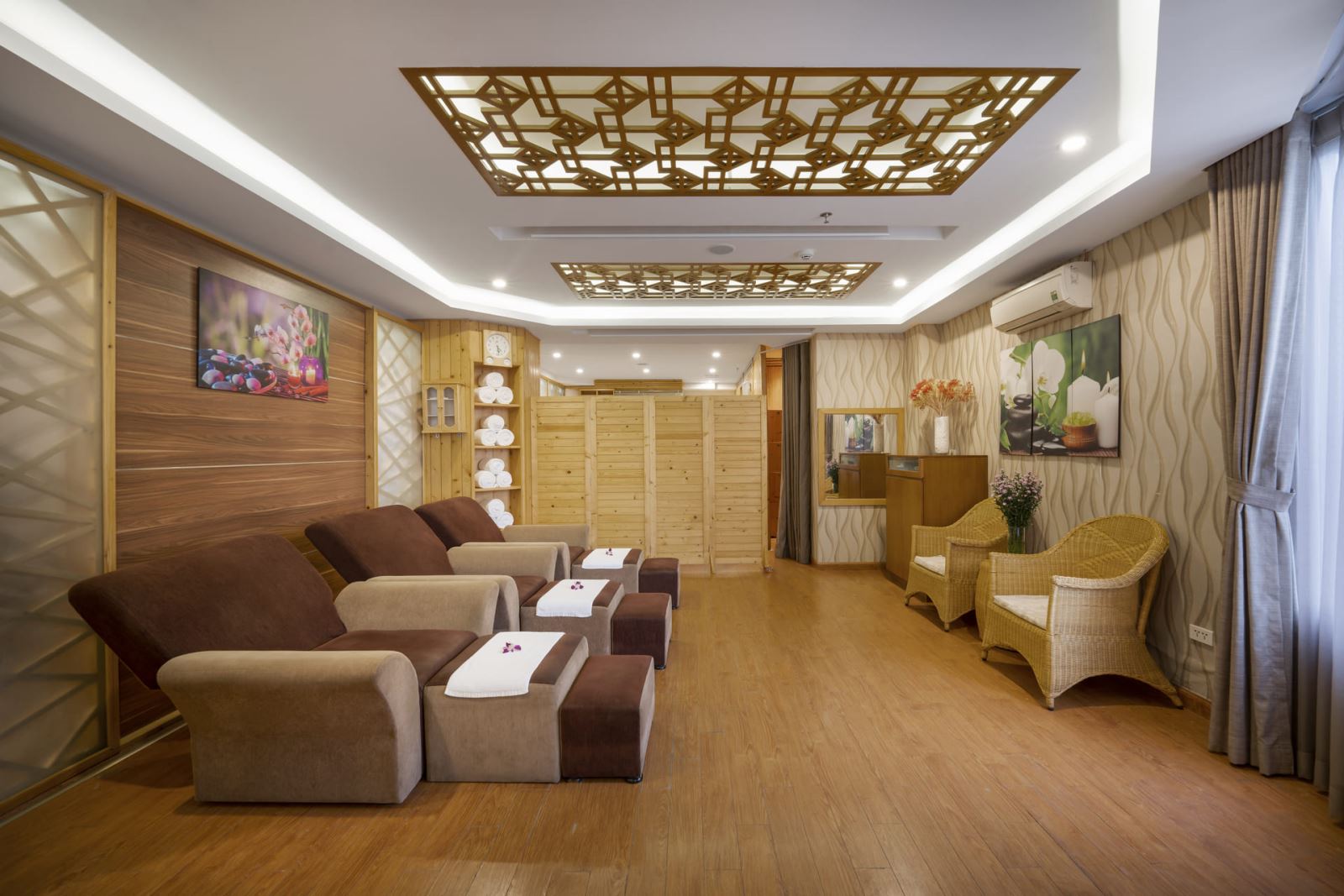 Đắm chìm vào cảm giác thư thái tuyệt vời trong làn nước ấm và thảo dược trị liệu. Xoa dịu và tiếp thêm sức lực cho đôi chân của bạn sau ngày dài với các kỹ thuật xoa bóp và bấm huyệt từ các chuyên viên lành nghề.